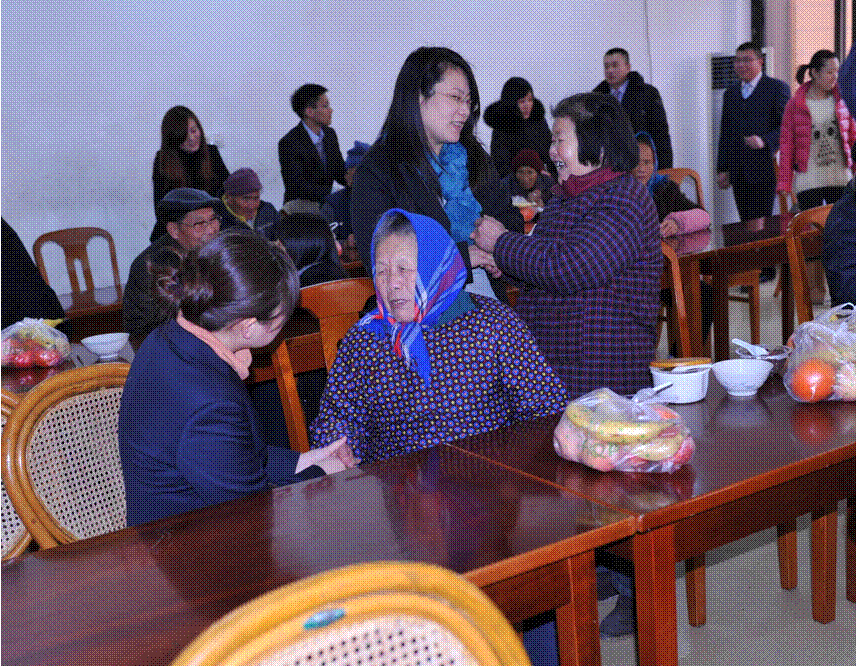 大家分头行动。主持人开始用家乡话跟阿公阿婆们问好了,程工开始跟老人们鞠躬致敬了……后勤人员开始为老人们盛递热气腾腾的腊八粥了……演职人员各就各位,准备节目上场……